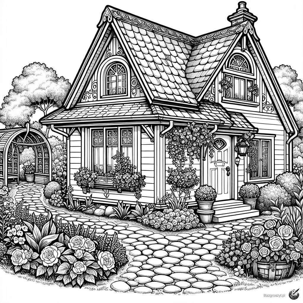 Cześć! Zanurz się w świecie kreatywności i relaksu z naszą urokliwą kolorowanką przedstawiającą domek z ogródkiem.